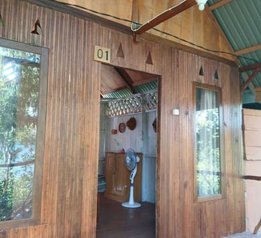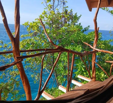 We have 4 Deluxe bungalows on the rocky hill and 1 in front of the beach